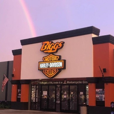 On July 31, 2003, HHH moved from South Coast Highway in Oceanside to 717 Center Drive in San Marcos and became known as “Biggs H-D”. The Oceanside store remained open until 2008. The name Biggs came to Richard L (current owner and son-in-law of Harley Hartman, the original owner of HHH) in a dream. Richard said he liked the sound of it and that it was one syllable instead of six. Of course, Oceanside HOG came along and became known as Biggs HOG.